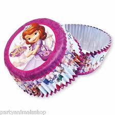 • Forminhas para cupcakes com estampa da personagem Sofia the First em rosa e lilás