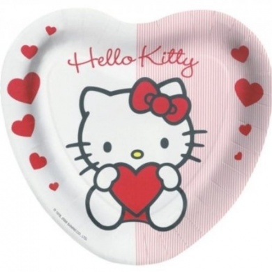 • Prato de papel coração Hello Kitty com corações vermelhos