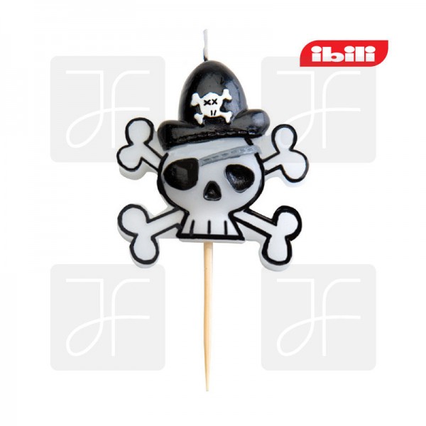 Vela de caveira pirata com palito de madeira e etiqueta ibili