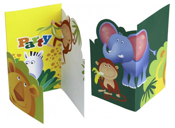 • Cartões de convite para festa com tema de animais da selva coloridos
