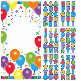 • Conjunto de papelaria decorativa com balões coloridos e letras e números autocolantes coloridos
