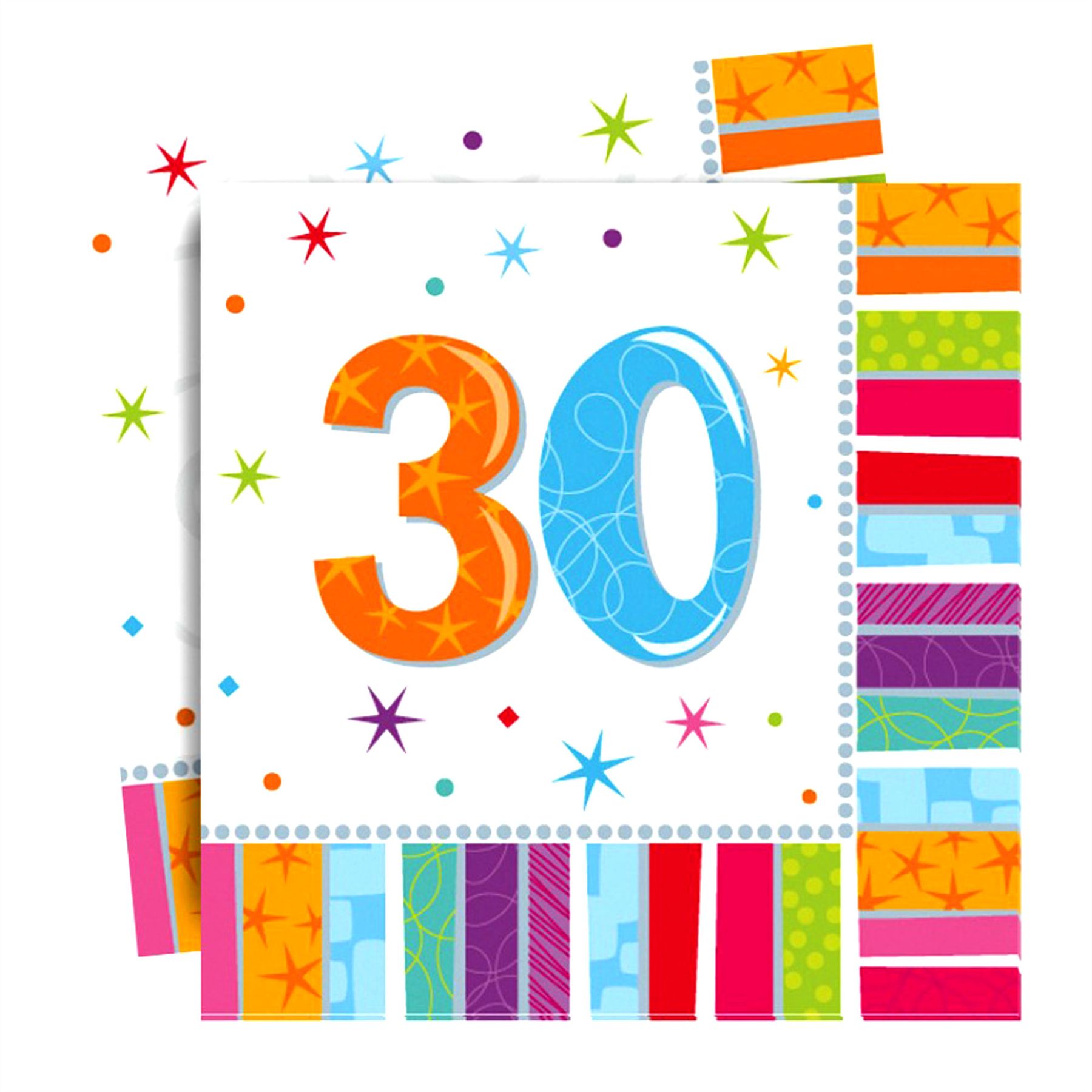 • Ilustração colorida do número 30 com estrelas e bordas decorativas