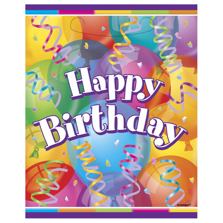 Cartaz colorido com balões e texto 'Happy Birthday'