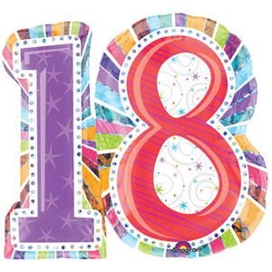 • Balões de aniversário em forma dos números 1 e 8 coloridos