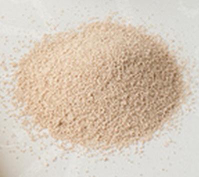 • Montículo de fermento seco instantâneo bege claro sobre superfície branca
