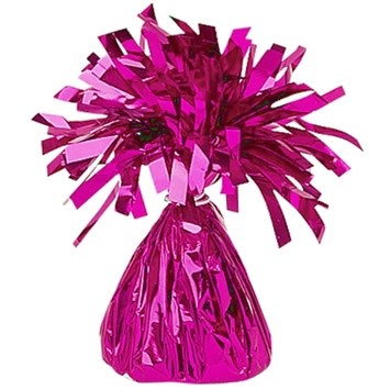 • Peso para balões metálico rosa brilhante com fitas finas no topo