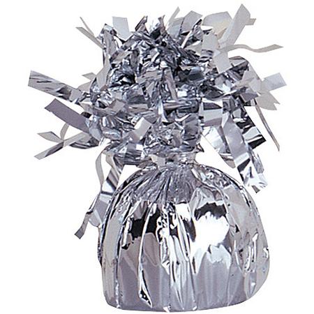 • Peso para balão de mesa prateado com decoração de franjas no topo
