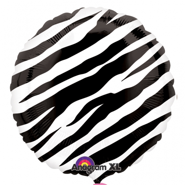• Balão redondo preto com riscas brancas zebras