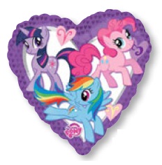 • Balão em forma de coração com personagens My Little Pony coloridos