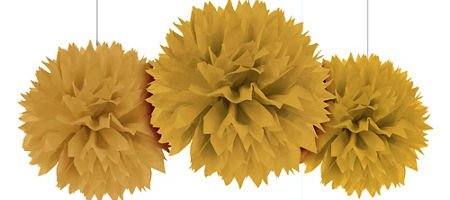 • Três pompons decorativos amarelos pendurados