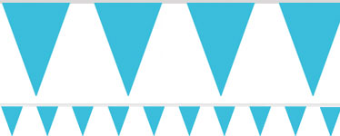 • Bandeirolas triangulares azuis penduradas em linhas brancas