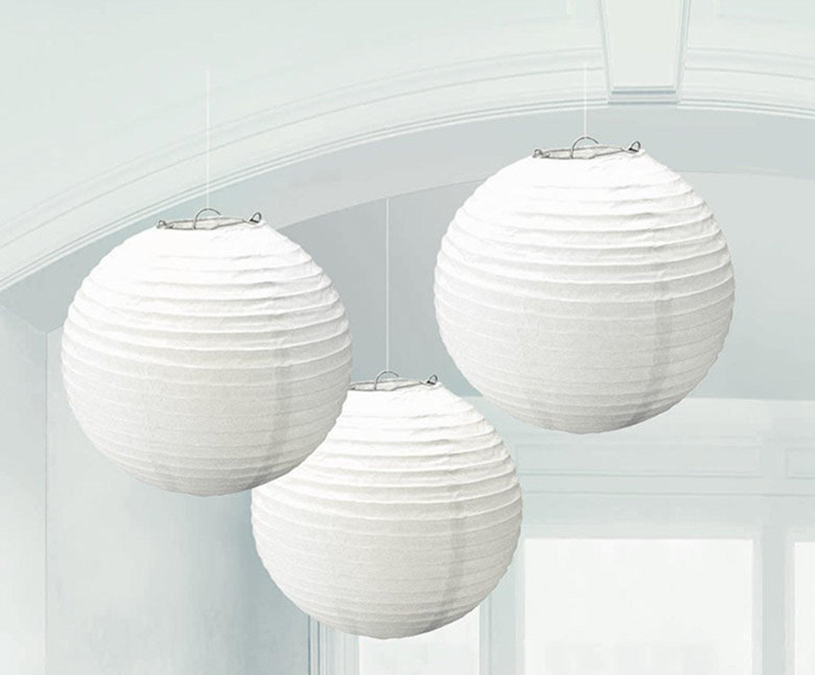 • Três lanternas de papel brancas redondas penduradas no teto
