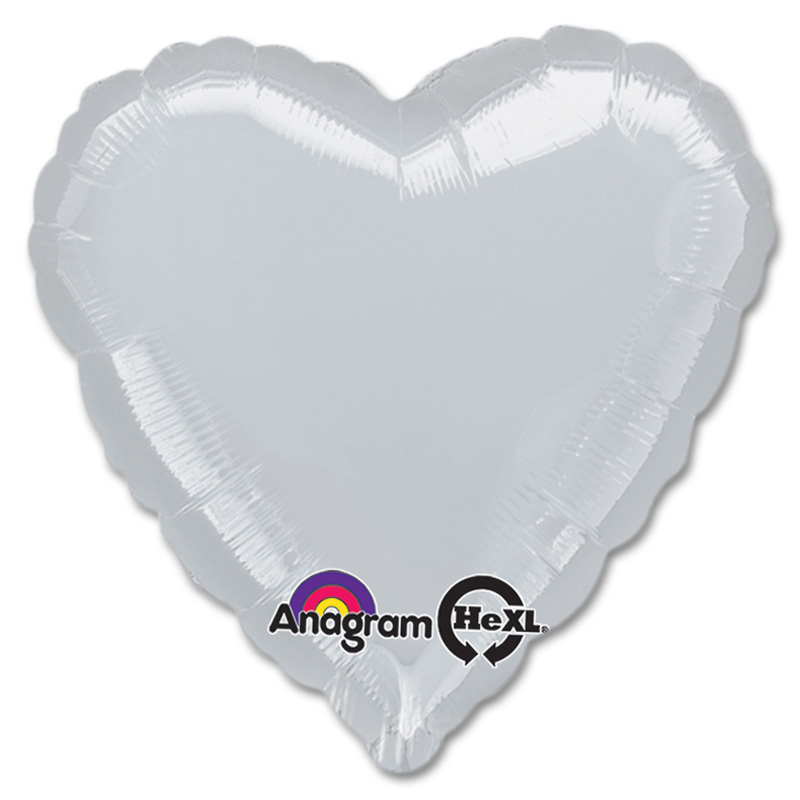 • Balão em forma de coração branco com logotipos Anagram e HeXL
