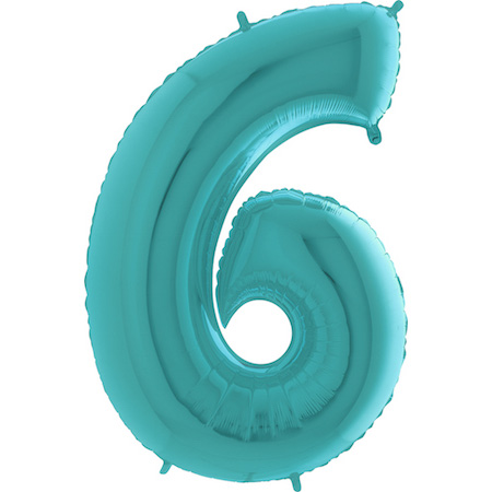 • Balão azul metalizado em forma do número 6