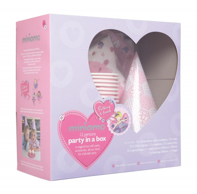 • Caixa festa 12 pessoas 'party in a box' rosa e lilás com padrões florais e corações