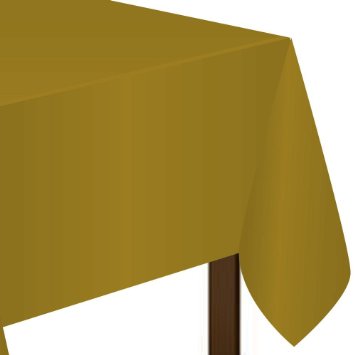 • Mesa com toalha amarelo-ouro e perna de madeira visível