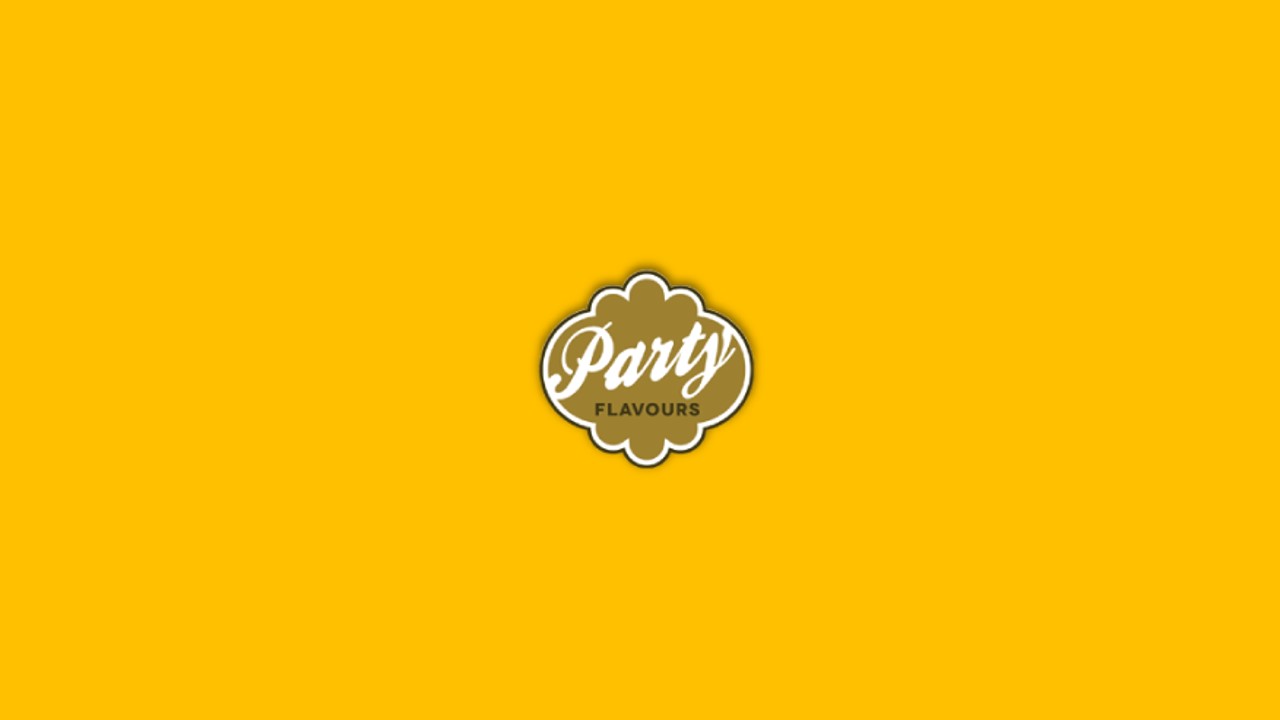 Logotipo Party FLAVOURS sobre fundo amarelo