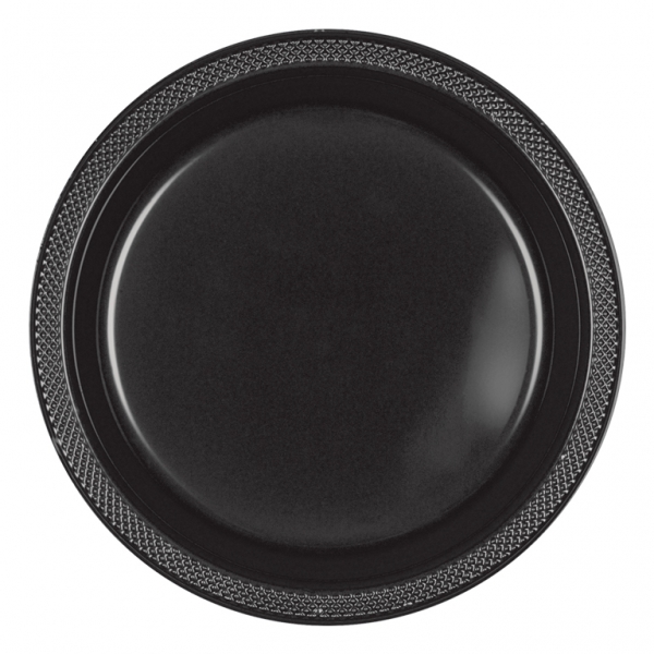 • Prato redondo preto com borda texturizada e centro liso