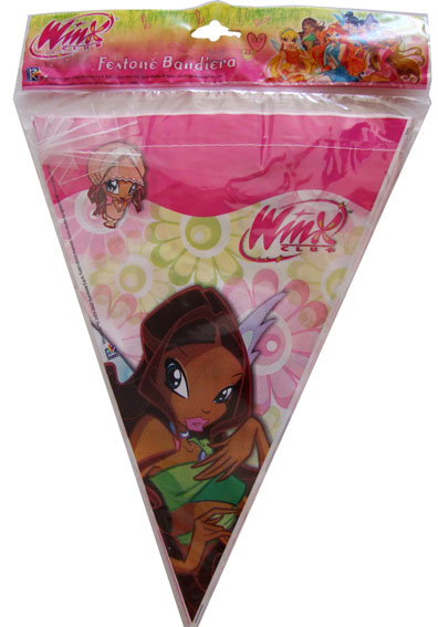 • Festone bandeira triangular rosa com personagens do desenho animado Winx Club