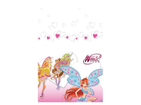 Caixa decorada com personagens das Winx Club e asas de fadas coloridas