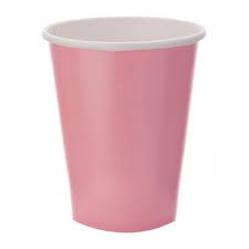Copo descartável de papel rosa com interior branco