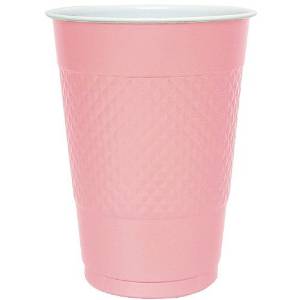 • Copo descartável de plástico cor-de-rosa com textura quadriculada
