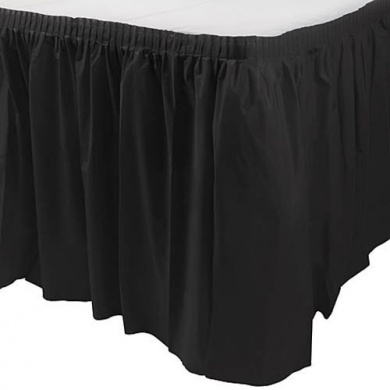 Saia para cama preta com tecido liso e pregas ajustáveis