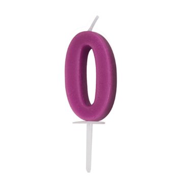 • Vela de aniversário número zero cor fúcsia com suporte branco.