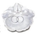 • anel de noivado prateado com pedra numa almofada branca com laços