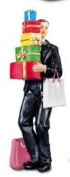 • Figura decorativa de homem com caixas de presente e sacola
