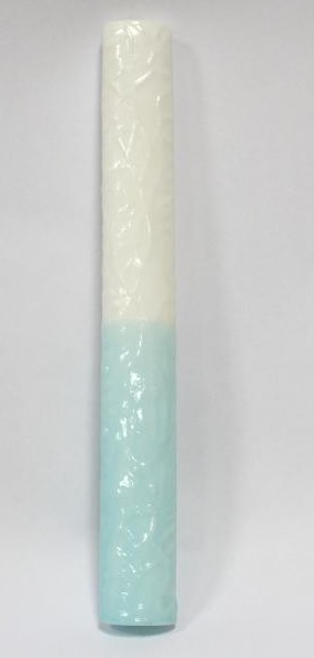 • Rolo plástico branco e azul claro embalado em plástico transparente