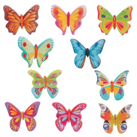 • Dez borboletas decorativas coloridas sobre fundo branco.