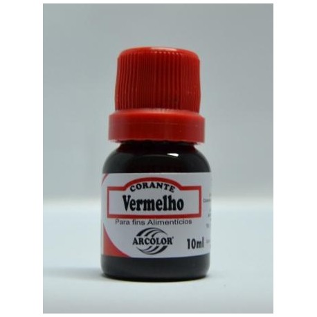 Frasco pequeno de corante alimentar vermelho com tampa vermelha e rótulo branco