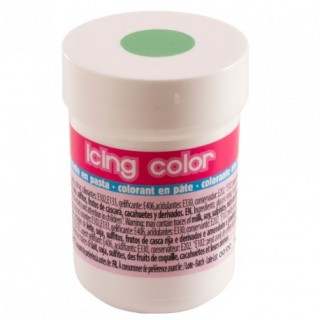 • Frasco branco de pasta de corante alimentar Icing Color com rótulo rosa e azul