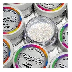 • Embalagens redondas de pó brilhante 'RAINBOW DUST White Hologram' com tampas brancas