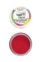 • Pó pigmentado vermelho em embalagem plástica com tampa branca e rótulo colorido