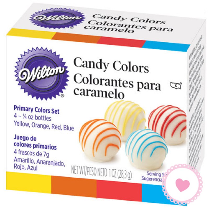 • Embalagem de corantes para caramelo Wilton com 4 frascos e cores primárias