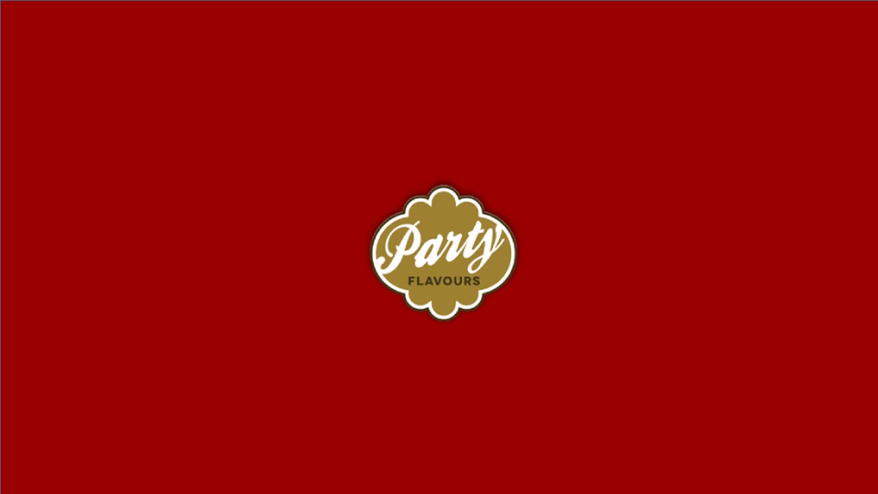 Logotipo Party FLAVOURS sobre fundo vermelho