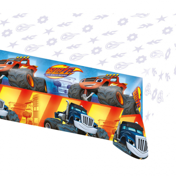 Toalha de mesa infantil com desenhos de carrinhos de corrida coloridos