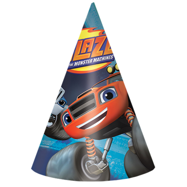 • Chapéu de festa Blaze and the Monster Machines com carro-monstro vermelho e azul.