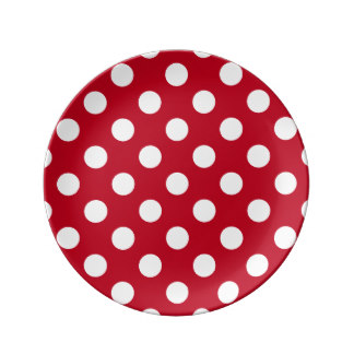 Prato vermelho com bolinhas brancas