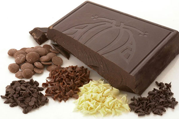 • Barra de chocolate escuro com gravação e várias raspas de chocolate em tons diferentes