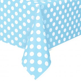 Toalha de mesa azul com bolinhas brancas