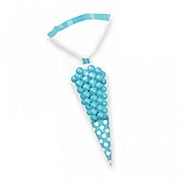 • Colar em cone com esferas azuis e fita branca com bordas azuis