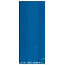 Saco plástico azul brilhante e liso sobre fundo branco