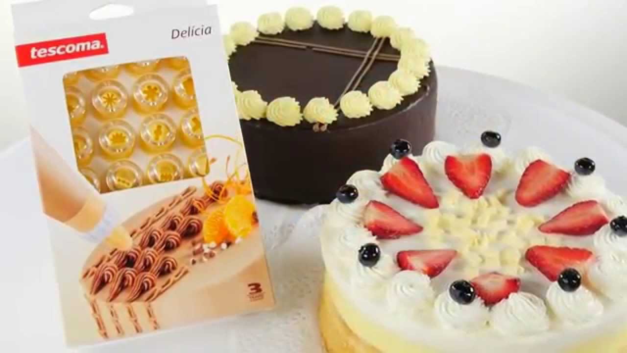 • duas tortas decoradas e uma caixa de embalagem TESCOMA Delicia