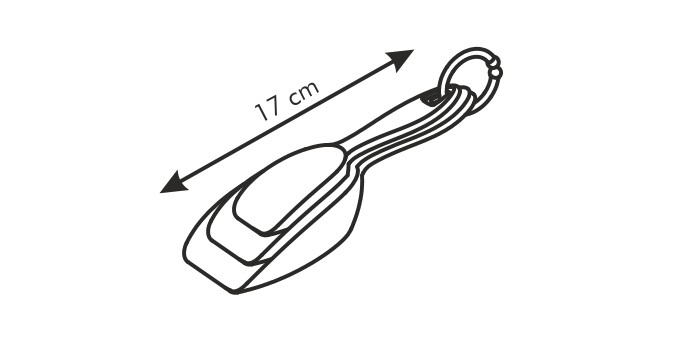 • Desenho de espátula de cozinha comprida de 17 cm com cabo e anel para pendurar