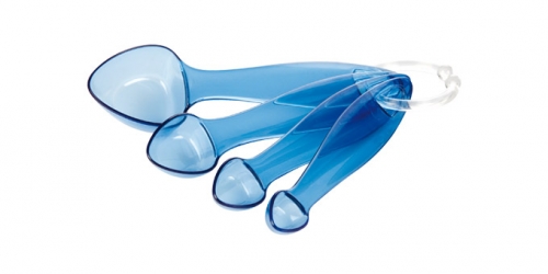 • Conjunto de 4 colheres medidoras azuis de diferentes tamanhos unidas por argola