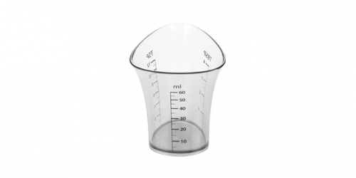 • Copinho doseador plástico transparente com graduação em ml