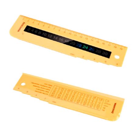 • Duas réguas plásticas amarelas com marca Faber-Castell e medidas em centímetros.